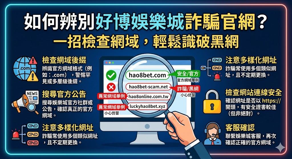 在數位化博弈時代,玩家在搜尋合法的娛樂城官網時,經常面臨資訊爆炸的困擾。隨著網路犯罪技術的演進,「好博娛樂城詐騙」案件頻傳,許多不法份子透過架設與正版網站極為相似的釣魚頁面,誘使玩家投入資金後捲款潛逃。本文將站在娛樂城實務角度,深度解析如何識別娛樂城詐騙手法,特別是針對好博娛樂城等知名品牌的冒名網站,提供專業的網域核對技巧,協助玩家遠離娛樂城詐騙名單的威脅,保障個人財產安全。